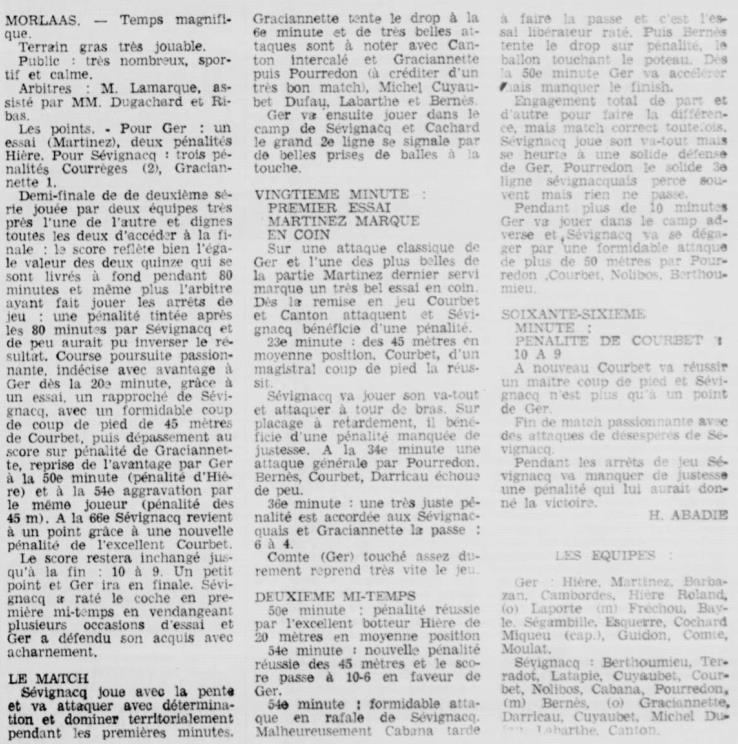 Rugby 1977-1978 / 50 ans du Championnat du Béarn