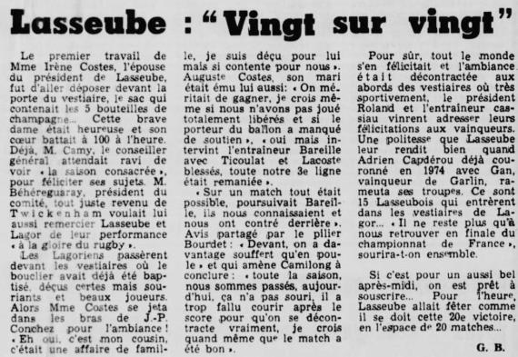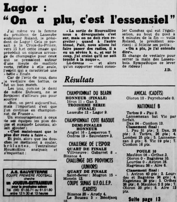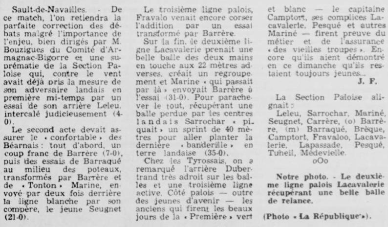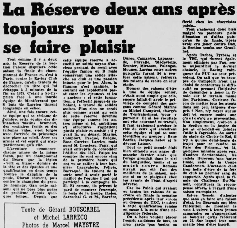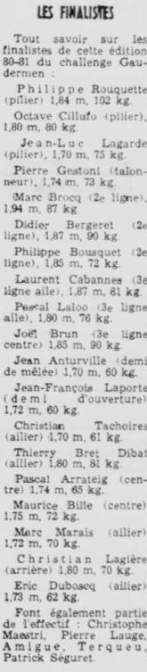 Rugby 1980-1981 / 50 ans du Championnat du Béarn