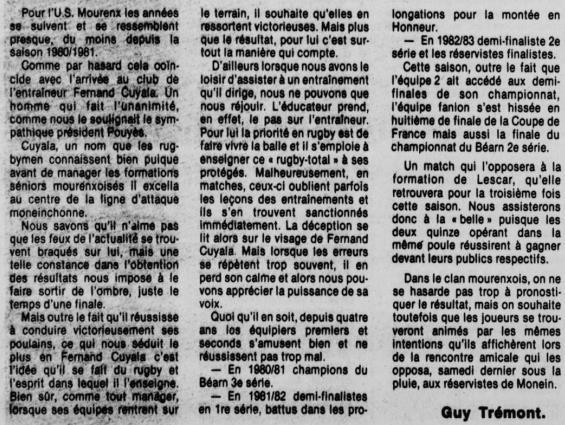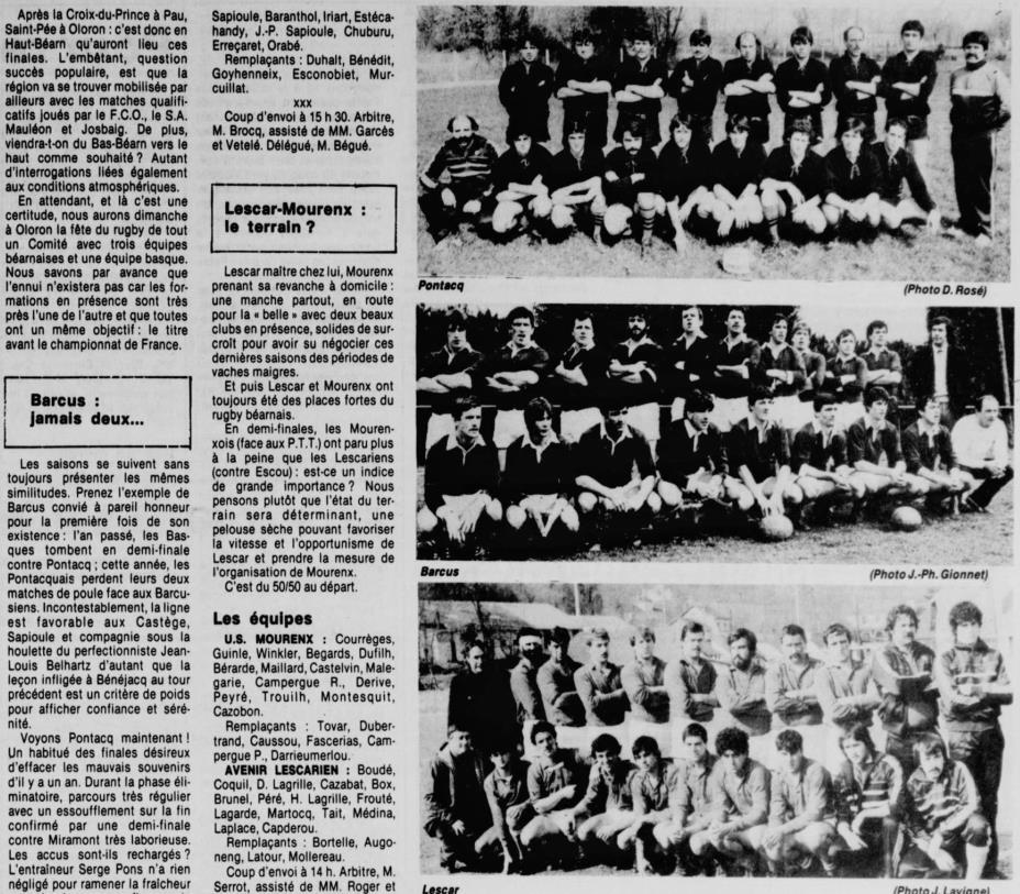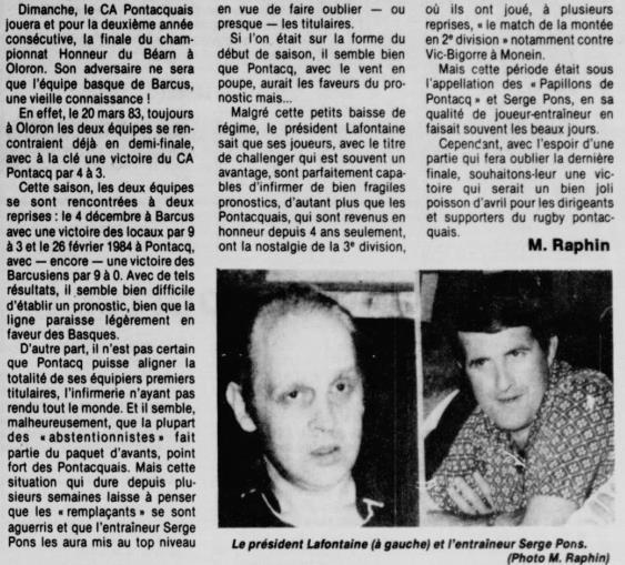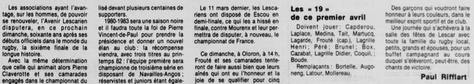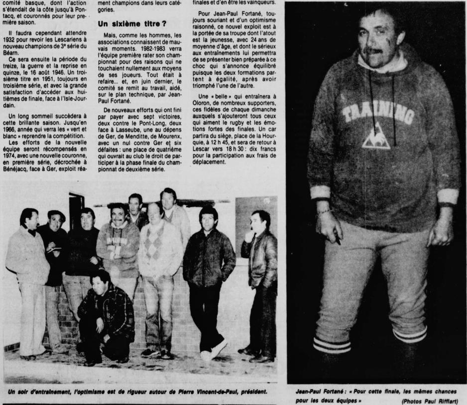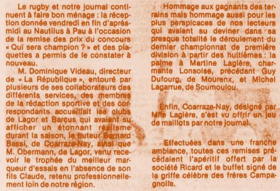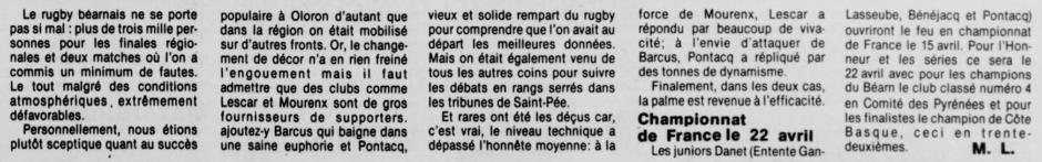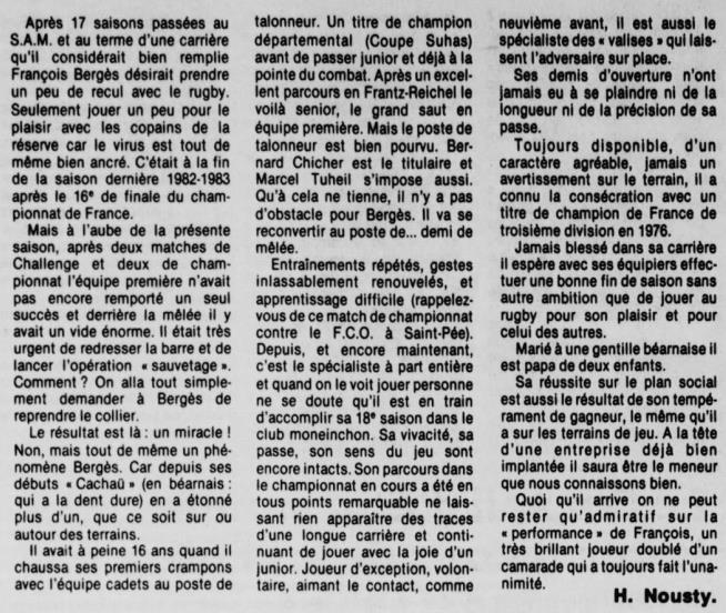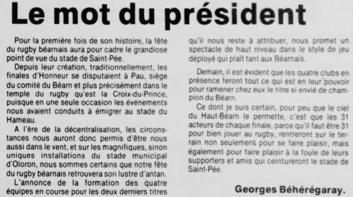 Rugby 1983-1984 / 50 ans du Championnat du Béarn