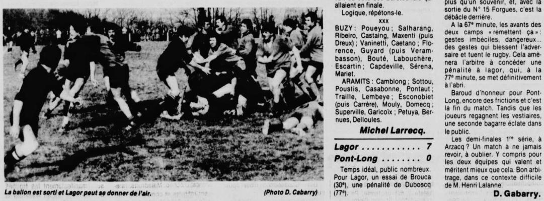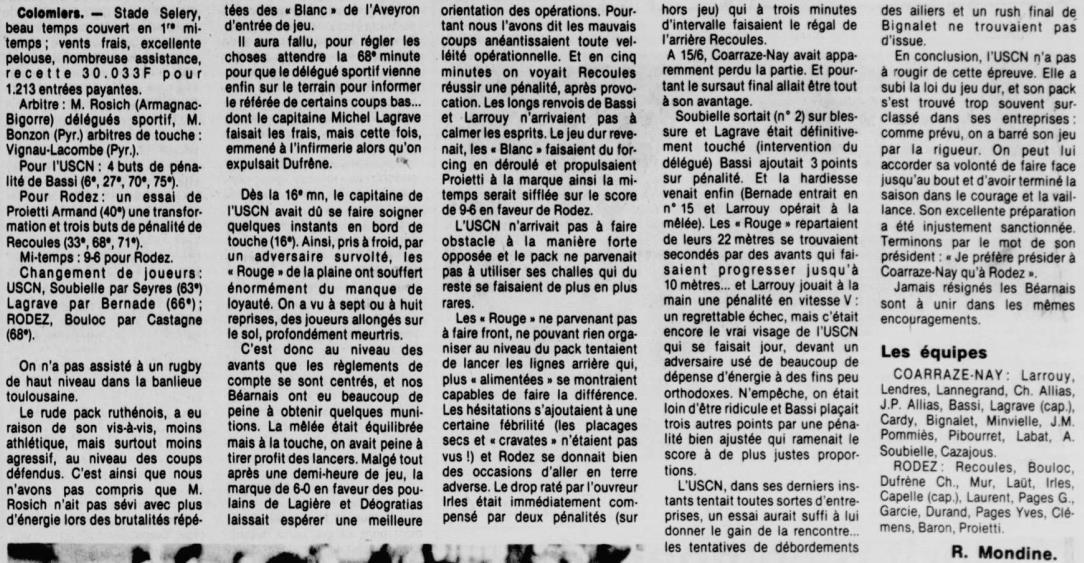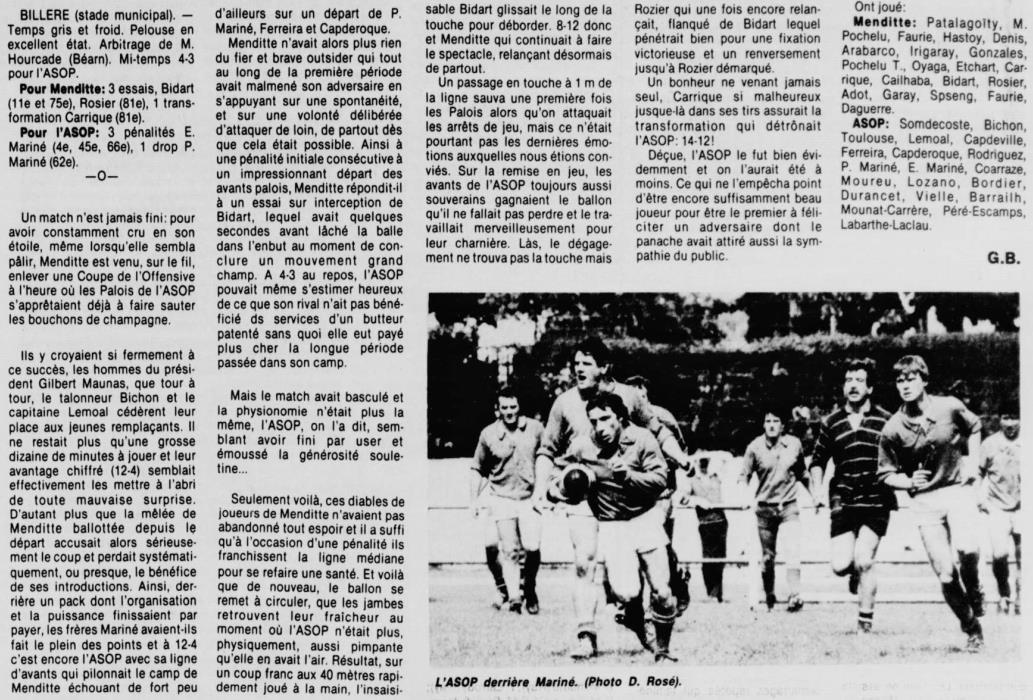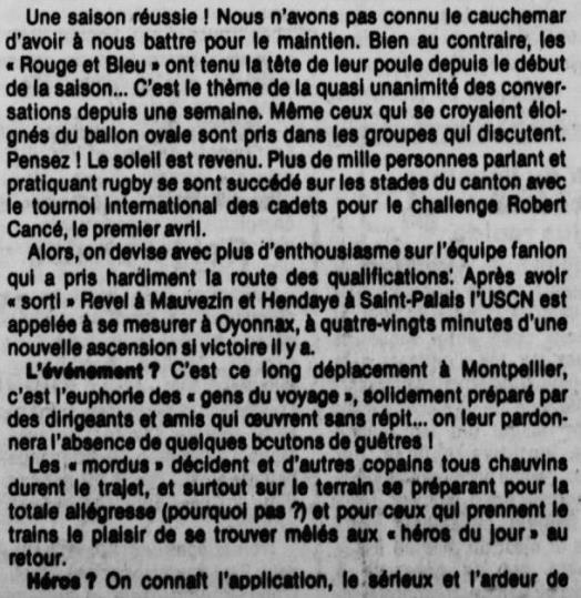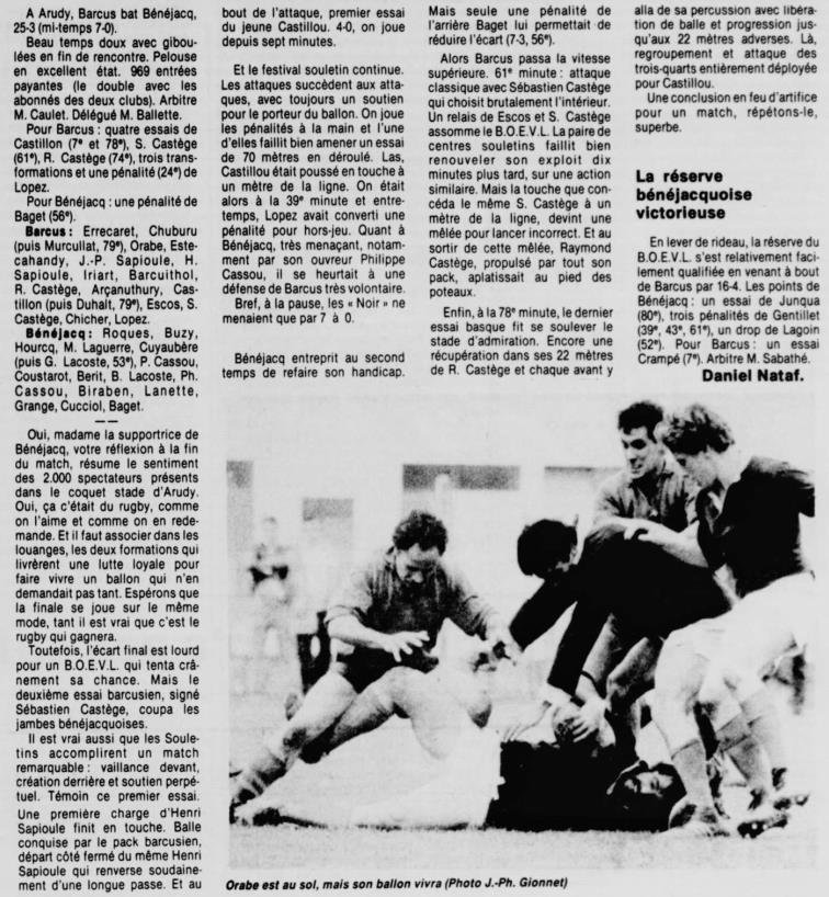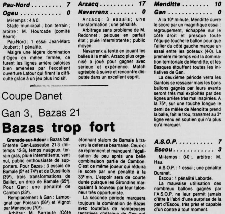 Rugby 1983-1984 / 50 ans du Championnat du Béarn
