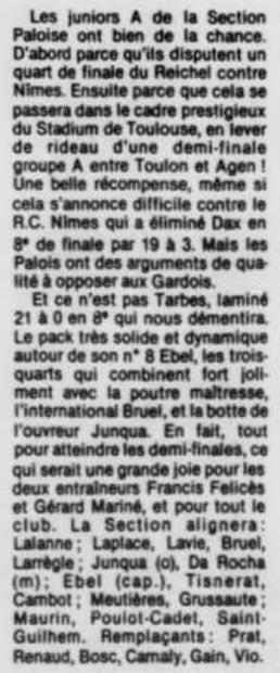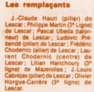 Rugby 1986-1987 / 50 ans du Championnat du Béarn