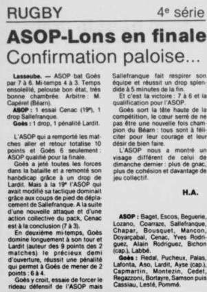 Rugby 1986-1987 / 50 ans du Championnat du Béarn by La République des Pyrénées - Issuu