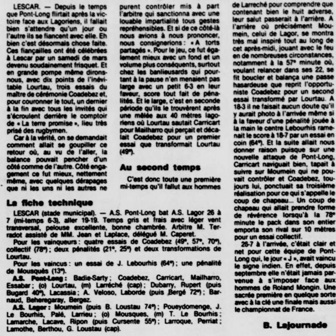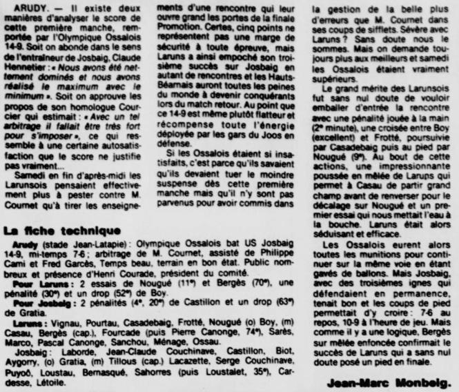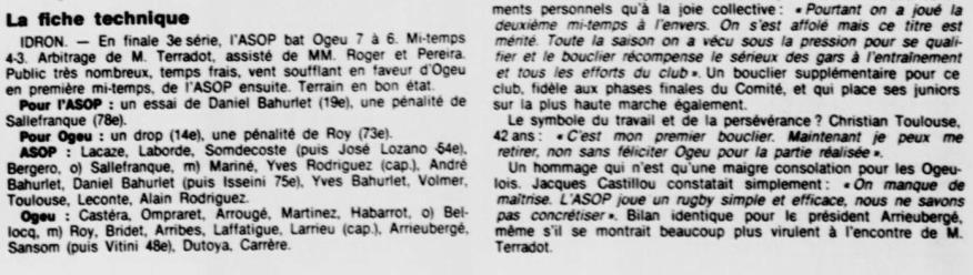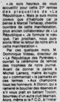 Rugby 1989-1990 / 50 ans du Championnat du Béarn