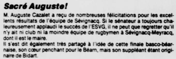 Rugby 1990-1991 / 50 ans du Championnat du Béarn