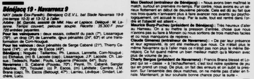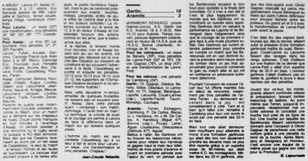 Rugby 1991-1992 / 50 ans du Championnat du Béarn