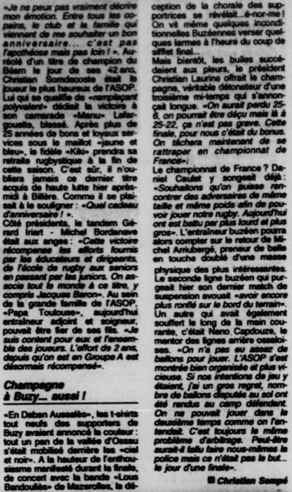 Rugby 1994-1995 / 50 ans du Championnat du Béarn