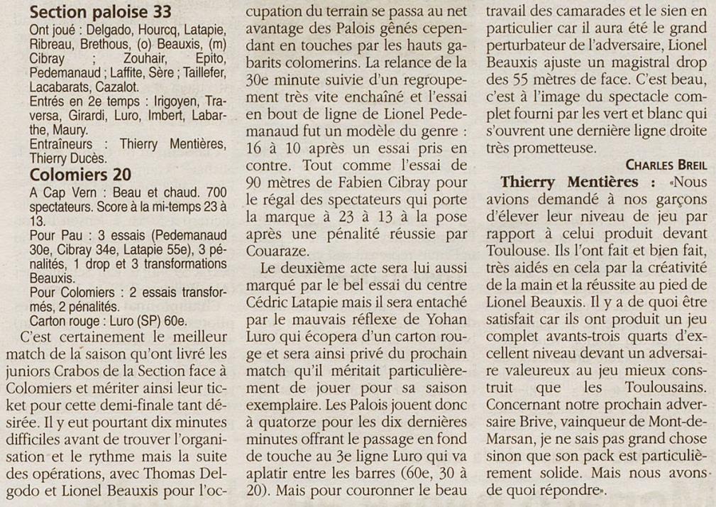 Pour Bizanos : Quatre pénalités : P. Trieux (35e, 46e,50e, 56e).