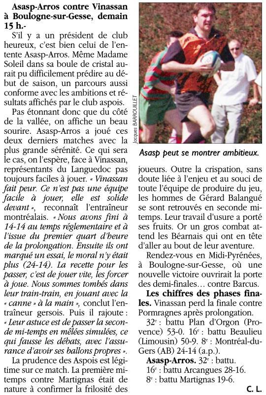 Rugby 2003-2004 / 50 ans du Championnat du Béarn by La République des Pyrénées - Issuu