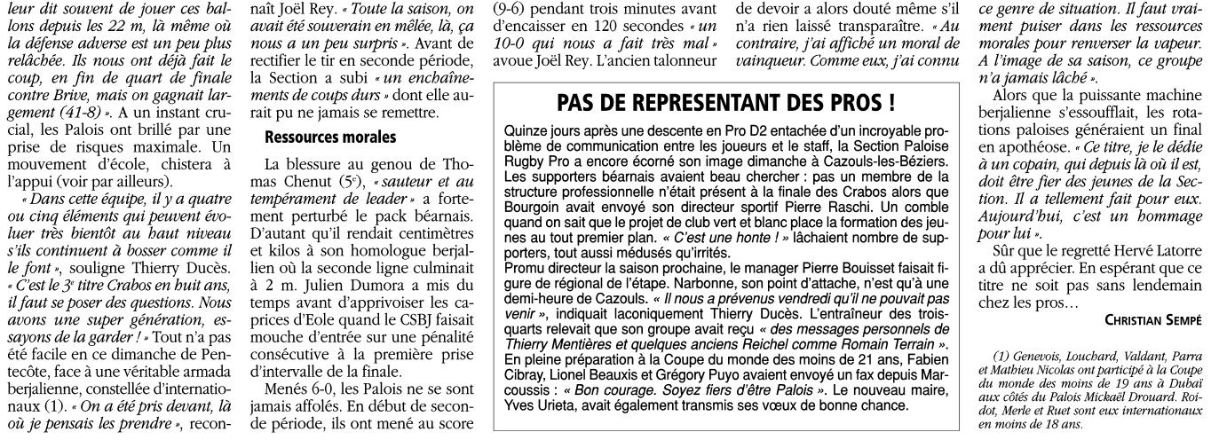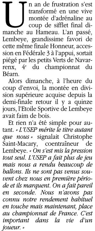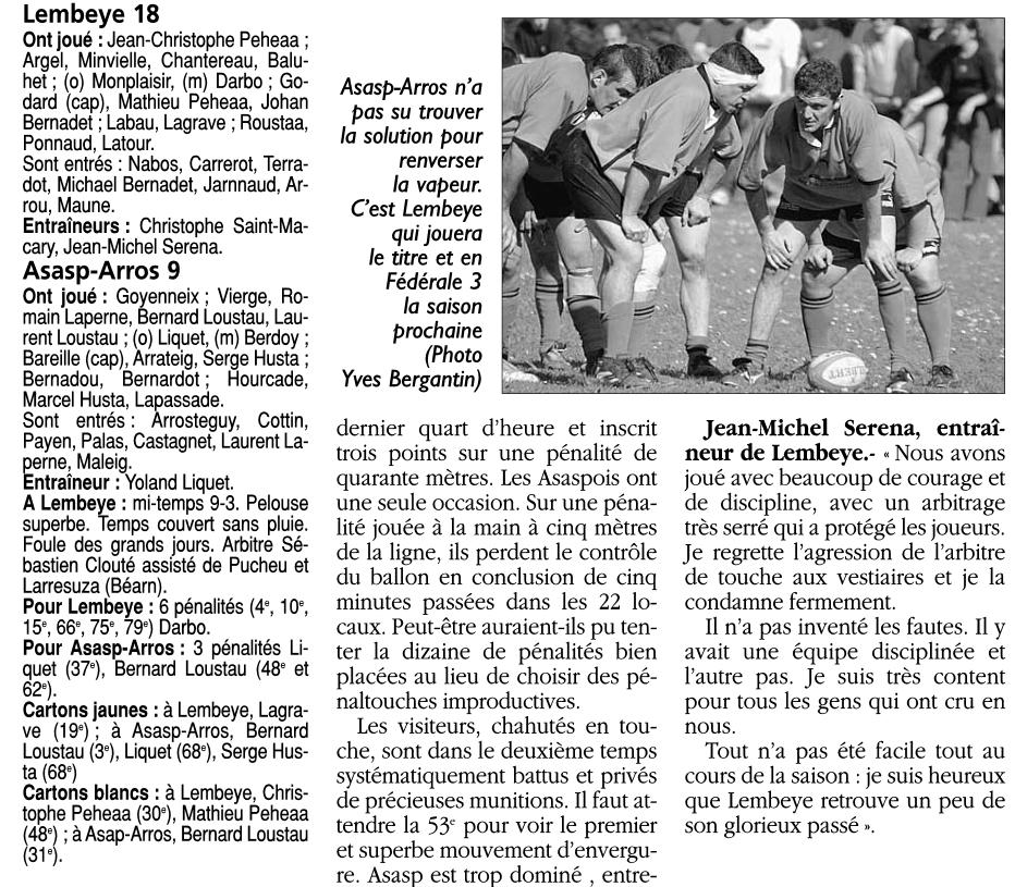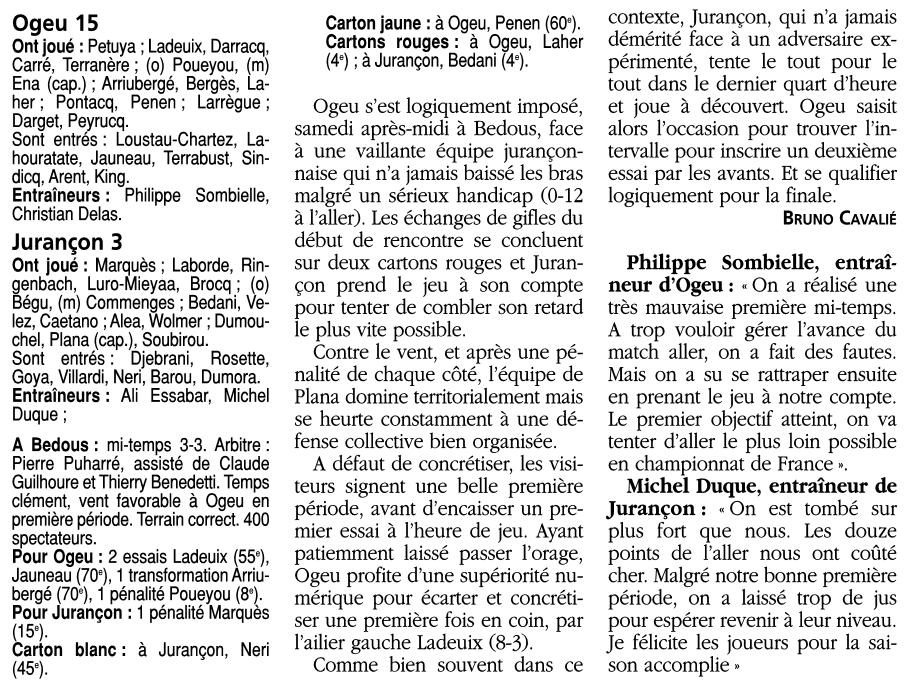 Rugby 2005-2006 / 50 ans du Championnat du Béarn