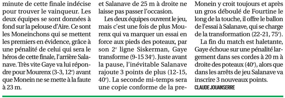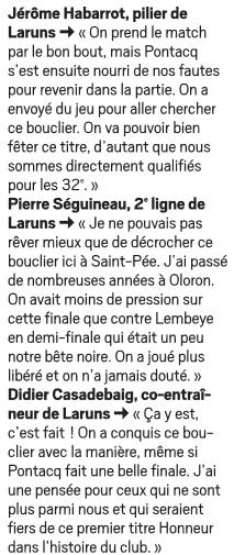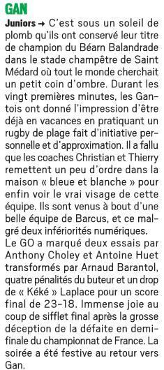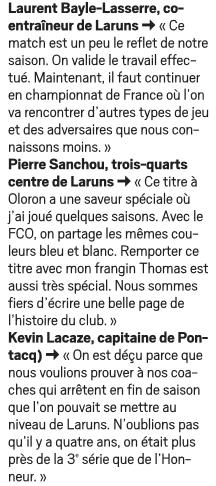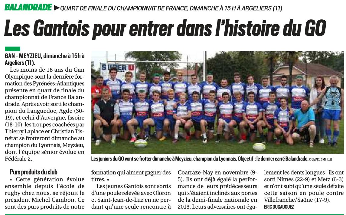 Rugby 2016-2017 / 50 ans du Championnat du Béarn