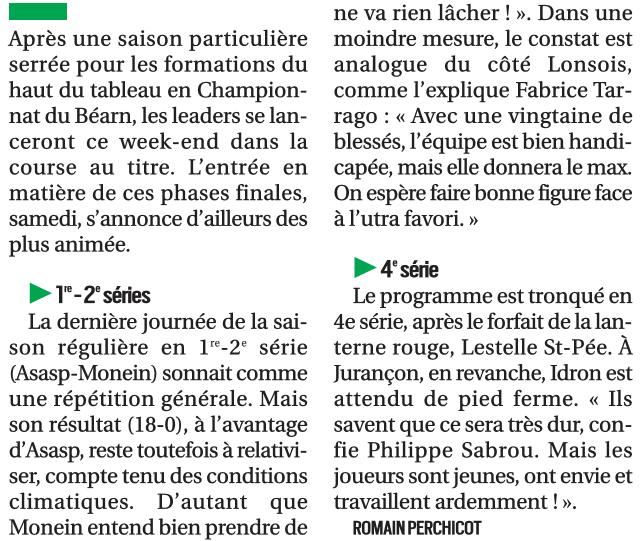 Rugby 2016-2017 / 50 ans du Championnat du Béarn by La République des Pyrénées - Issuu