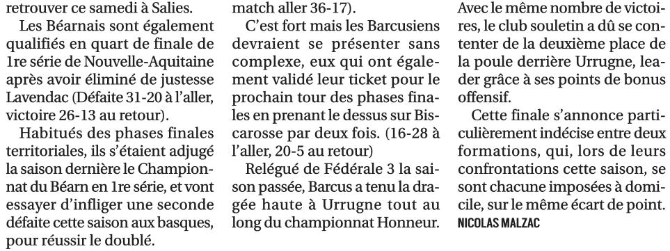 Rugby 2018-2019 / 50 ans du Championnat du Béarn