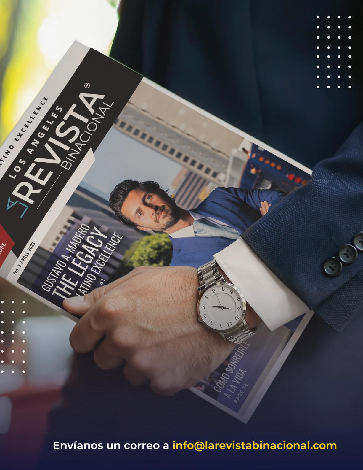 As the warmth of spring begins to blossom, I am delighted to present to you our very rst edition of LA REVISTA BINACIONAL in Baja California, with Sandra Gastelum as this region’s director. We are very excited about this new venture, and we hope that you will nd it as amazing as we think it is.