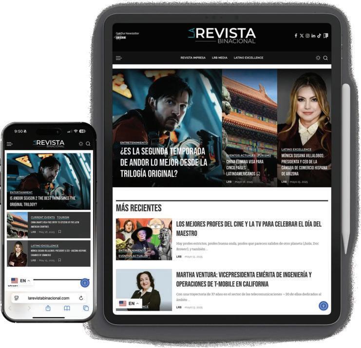 En La Revista Binacional, nos enorgullece destacar las historias, los negocios y los líderes que continúan impulsando a nuestra comunidad a través de las fronteras. Así como las hojas cambian de color, nuestra cultura continúa creciendo, adaptándose y oreciendo, siempre arraigada en los valores y las tradiciones que nos de nen. (¡Nadie puede decirnos quiénes ser ni de qué enorgullecernos!)