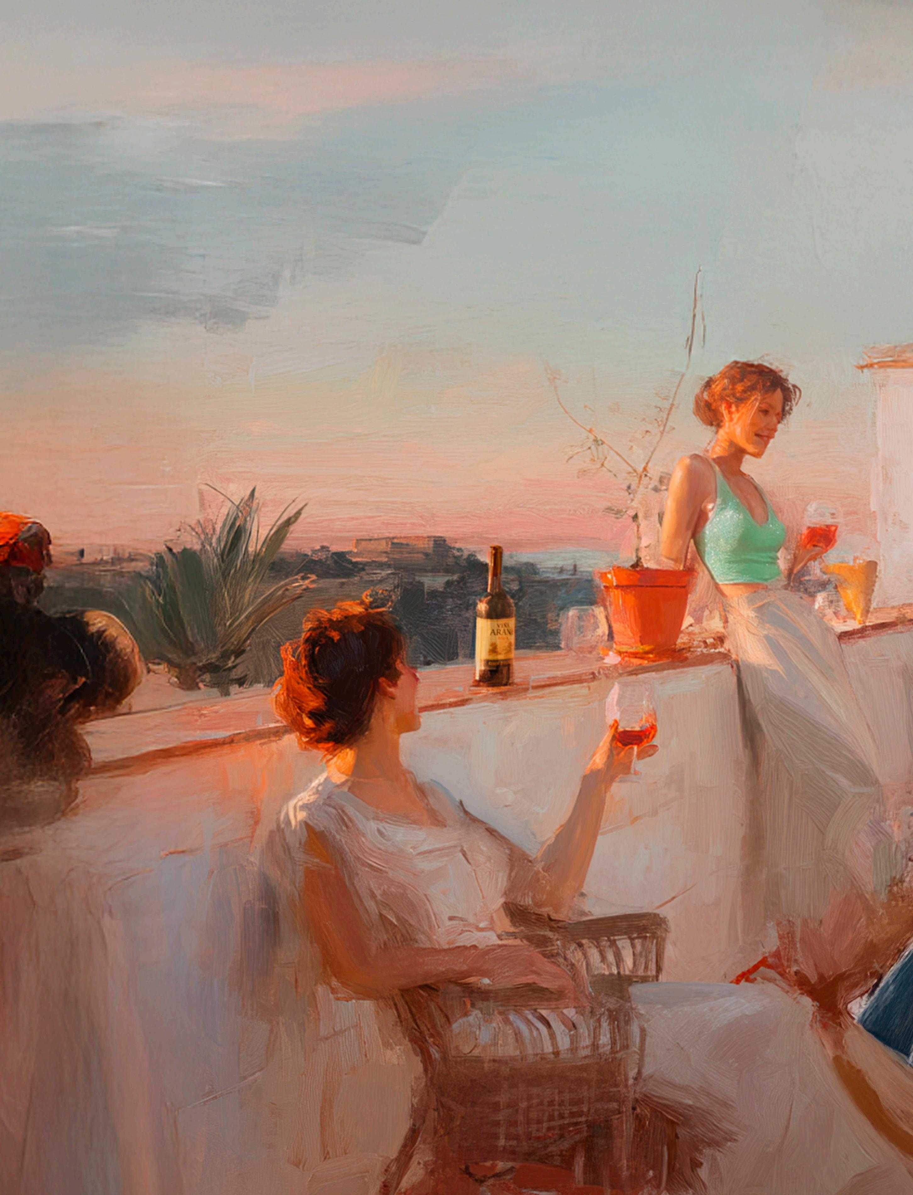 Una copa en la mano y la promesa de que todo está bien. Esa es la magia de los atardeceres de verano: un instante suspendido en la memoria.