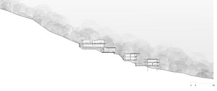 Implantação otimizada, com poucos cortes no terreno e adotando uma cobertura destacada, de maneira a maximizar a ventilaçãoponto forte para diminuição do consumo de energia A implantação desta maneira também permite cobertura vegetal bem próxima e abaixo das áreas edificadas.