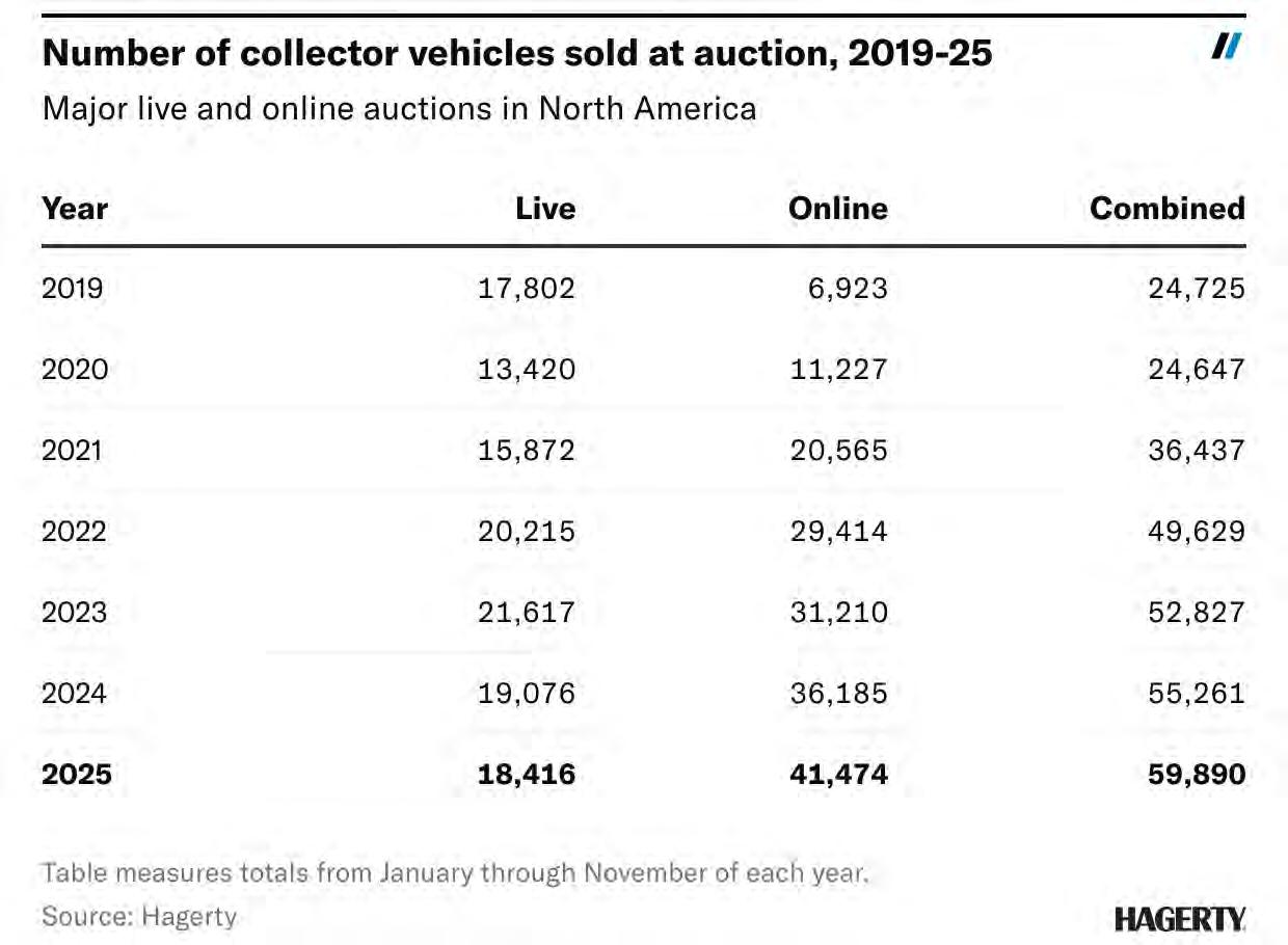 vehicles are still sold privately, but auctions are the most visible component of the market and tend to set the tone and expectations. Online auctions were around before the pandemic, but their popularity exploded when bored enthusiasts found themselves at home with little else to do but buy cars and drive them. More platforms popped up, people got comfortable with buying vintage cars sight unseen, and some even got comfortable enough to buy blue-chip, seven-figure cars via pixels on a screen. As a result, the number of vehicles sold online has consistently grown.