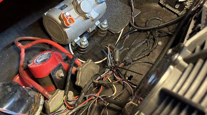 the final steps in the project. Electric air conditioning is a real thing, but I don’t have all the bugs worked out of it yet, and I wouldn’t recommend it if a conventional compressor can be bolted to the block and run off a belt.