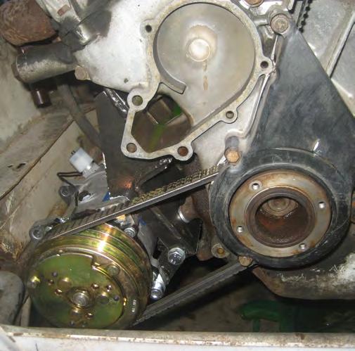 Your basic Sanden-clone compressor mounted to the engine block with a bracket.