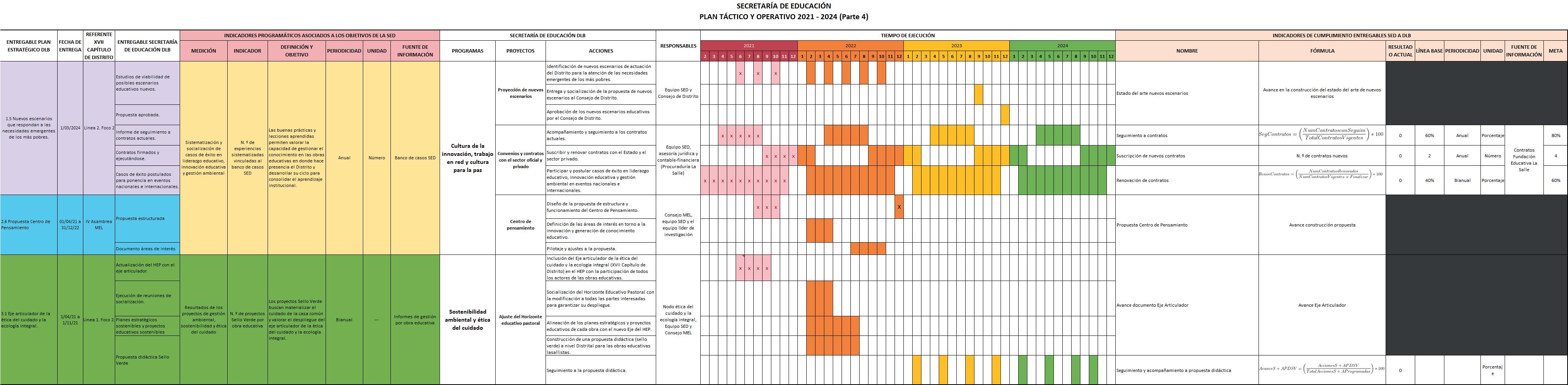 Finalmente, la estructura para el direccionamiento de la Secretaría ha dado como resultado el siguiente Plan táctico y operativo que se desarrollará durante el periodo 2021-2024: