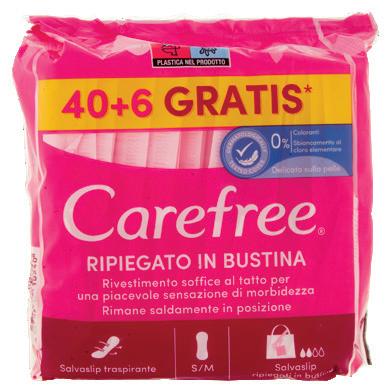 CURA PERSONA 9 1,79 1,99 omaggi disponibili fino ad esaurimento scorte e secondo disponibilità del punto vendita *in promozione dove presente *Invia un SMS al +393399958555 con il codice gioco (56) e i dati dello scontrino. Conserva lo scontrino in originale per convalidare l’eventuale vincita fino a 90 giorni dalla data dell’estrazione di recupero. Ogni scontrino dà diritto ad una sola partecipazione e puoi partecipare con massimo 5 scontrini. Concorso va lido dal 15/10/2022 al 15/11/2022 nei punti vendita Acqua & Sapone e La Saponeria aderenti all’iniziativa. Eventuale estrazione di recupero entro il 15/01/2023. Montepremi: €3.000,00. Premi in palio: n.12 Voucher per una consulenza on line di armocromia.Regolamento e informativa privacy su www.lines.it CAREFREE proteggi slip • Cotton Feel 44 pezzi • Plus Large 36 pezzi CAREFREE proteggi slip ripiegato 40+6 pezzi gratis *Per partecipare devi essere già iscritto alla raccolta punti Coccole Pampers 3.0 tramite la APP, fare l’acquisto in unico scontrino e caricare lo scontrino nell’apposito spazio. Puoi partecipare con 1 scontrino che dà diritto ad una sola partecipazione. Ricorda, se parteciperai ad almeno 2 o più tappe entro il 31/01, sbloccherai ulteriori missioni esclusive IO&TE. Acquista Pampers, scopri sulla App “Coccole Pampers” o su www.pampers.it come partecipare, carica il codice che trovi nelle confezioni e raccogli i Punti Coccole per richiedere fino a 2 premi. Conserva il codice originale fino alla consegna del premio. Ogni codice potrà essere giocato una volta e si potrà partecipare con un solo account. Operazione a premio valida dal 01/02/2022 al 31/01/2023. Puoi partecipare anche acquistando i prodotti HERO Solo. Tutti i dettagli sul regolamento e informativa privacy sulla App “Coccole Pampers“ e su www.pampers.it PAMPERS Baby Dry pannolini assortiti 8,90 1 PEZZO 23 ,90 3 PEZZI 16 ,90 2 PEZZI PACCO DOPPIO LIBENAR soluzione fisiologica 15 fiale1,20 2,20 SOFFICE XXL salviette baby 72 pezzi SPEEDY CARE Baby Line salviette baby 72+72 pezzi PAMPERS Progressi pannolini assortiti LINES Petalo assorbenti assortiti LINES Idea Notte assorbenti 14 pezzi LINES Seta Ultra assorbenti assortiti PAMPERS Progressi Sensitive salviette 63 pezzi 72 pezzi 3,00 3,50 NATURAVERDE Baby • bagno 200 ml • olio spray 100 ml* • shampoo 200 ml 7,90 1,50 2,50 8,90 2,00 PACCO DOPPIO MAXI FORMATO