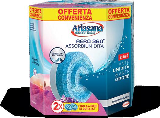 AIRWICK Oli Essenziali diffusore elettrico + ricarica ARIASANA Aero 360° kit assorbiumidità + ricarica 450 g