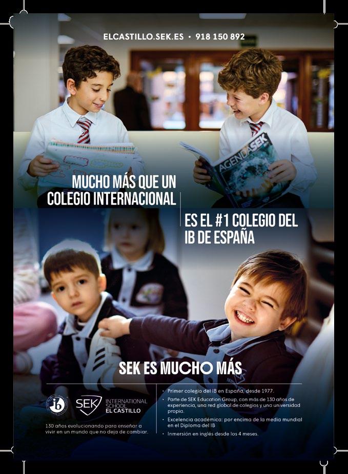 grama de la Escuela Primaria del Bachillerato Internacional (IB), fomentando el pensamiento crítico, la autonomía y el aprendizaje responsable. SEK-El Castillo fue el primer colegio IB en España, en 1977. El aprendizaje trasciende el aula gracias a espacios interiores abiertos, aulas sensoriales y zonas adaptadas a cada etapa. En el exterior, los patios de Infantil se han transformado en entornos pedagógicos al aire libre con áreas de arte, teatro, psicomotricidad, huerto, laboratorio de ciencias, lectura y