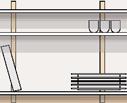 Hyllene skyves inn og låses i listene uten bruk av mekanisk innfestning. Listene griper kun i bakkant av hylleplatene, som gir full utny else av hele hyllen og et rent og stramt visuelt inntrykk. De e unike prinsippet gjør at man kan forandre konfigurasjonen og utrykket på en enkel og rask måte.