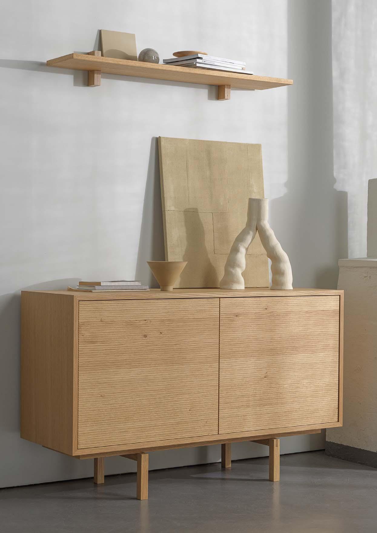 Og dette er hva det heter – pur norsk – med utelukkende produkter som er skapt av norske designere, produsert i Norge eller i utlandet. Utvalget spenner fra kuraterte møbler, belysning, tepper og gaver, til det egenutviklede hyllesystemet «Abel» som er kronet med Merket for god design.