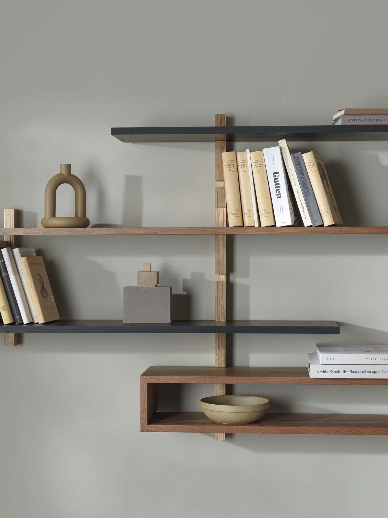 De skaper en fin dynamikk sammen med hylleplatene og spennende rom og mellomrom til din hylle.