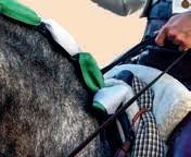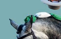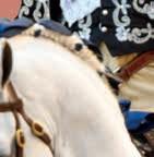 Tordo en fase blanca, lazos rojos y azules, lipizzano-lusitano, 11 años