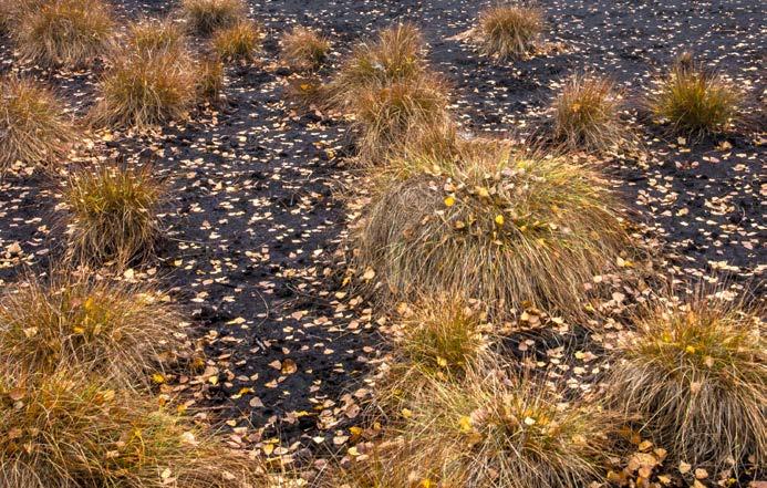 Jeżeli susza pozbawi te grząskie lasy – jak i wszelkie płytkie zbiorniki – wody, to aksamitna czerń dna wyschłego mokradła (jeśli podłoże jest torfowe) staje się znakomitym tłem dla liści spadających z rosnących wokół drzew (fot. 7).
