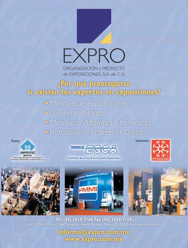 MÁSEXPOS es una publicación de EXPONET, S.A. DE C.V. .Revista bimestral 6 de junio de 2004. Domicilio de la publicación: Merced Gómez No. 12 Col. Merced Gómez CP. 03930 Benito Juárez, México D.F. Editor responsable: Raúl de la Cerda Fortes. Número de reserva al título del Instituto Nacional del Derecho de Autor 04-2004-051812565300-102 de fecha 18 de mayo de 2004. Número del certificado de licitud de título y contenido en trámite.