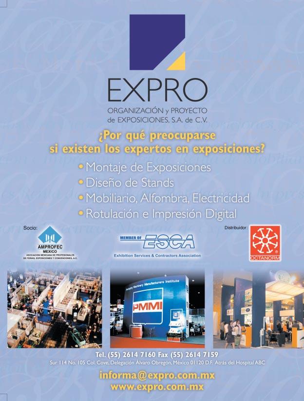 MÁSEXPOS es una publicación de EXPONET, S.A. DE C.V. .Revista bimestral 6 de junio de 2004. Domicilio de la publicación: Merced Gómez No. 12 Col. Merced Gómez CP. 03930 Benito Juárez, México D.F. Editor responsable: Raúl de la Cerda Fortes. Número de reserva al título del Instituto Nacional del Derecho de Autor 04-2004-051812565300-102 de fecha 18 de mayo de 2004. Número del Certificado de Licitud de Título 12937. Número del Certificado de Licitud de Contenido 10510. Impresa por : GRUPO GRÁFICOROMO S. A. de C.V. calle San José Leones No.9 Col. Lázaro Cárdenas C.P. 53560 Naucalpan, Estado de México. Distribuida por : Centro Mexicano de Desarrollo Editorial S.A. de C.V. Czda. la Viga No. 1525 Col. Unidad Modelo C.P. 09089 Del. Iztapalapa México D.F. Tiraje de esta publicación 10,000 ejemplares. Suscripción por un año $ 140.00 por seis números.