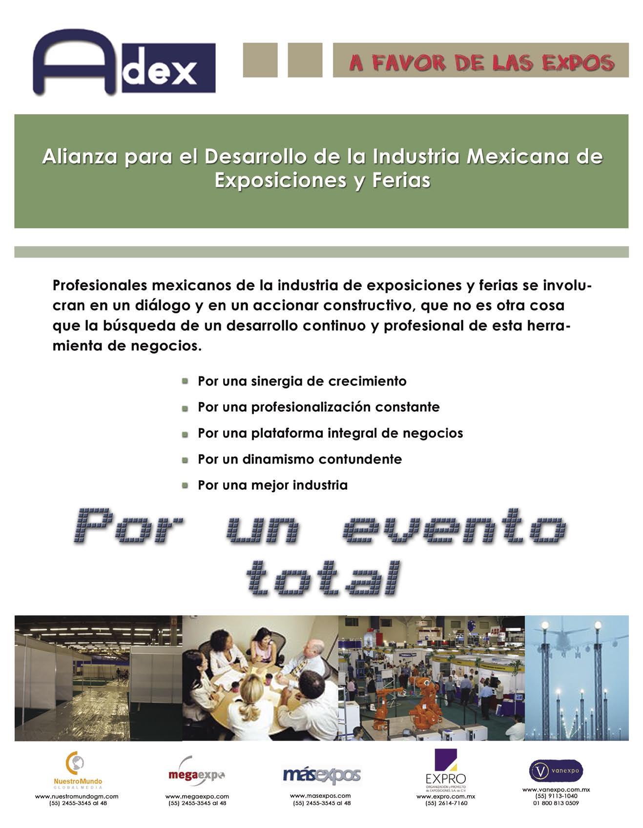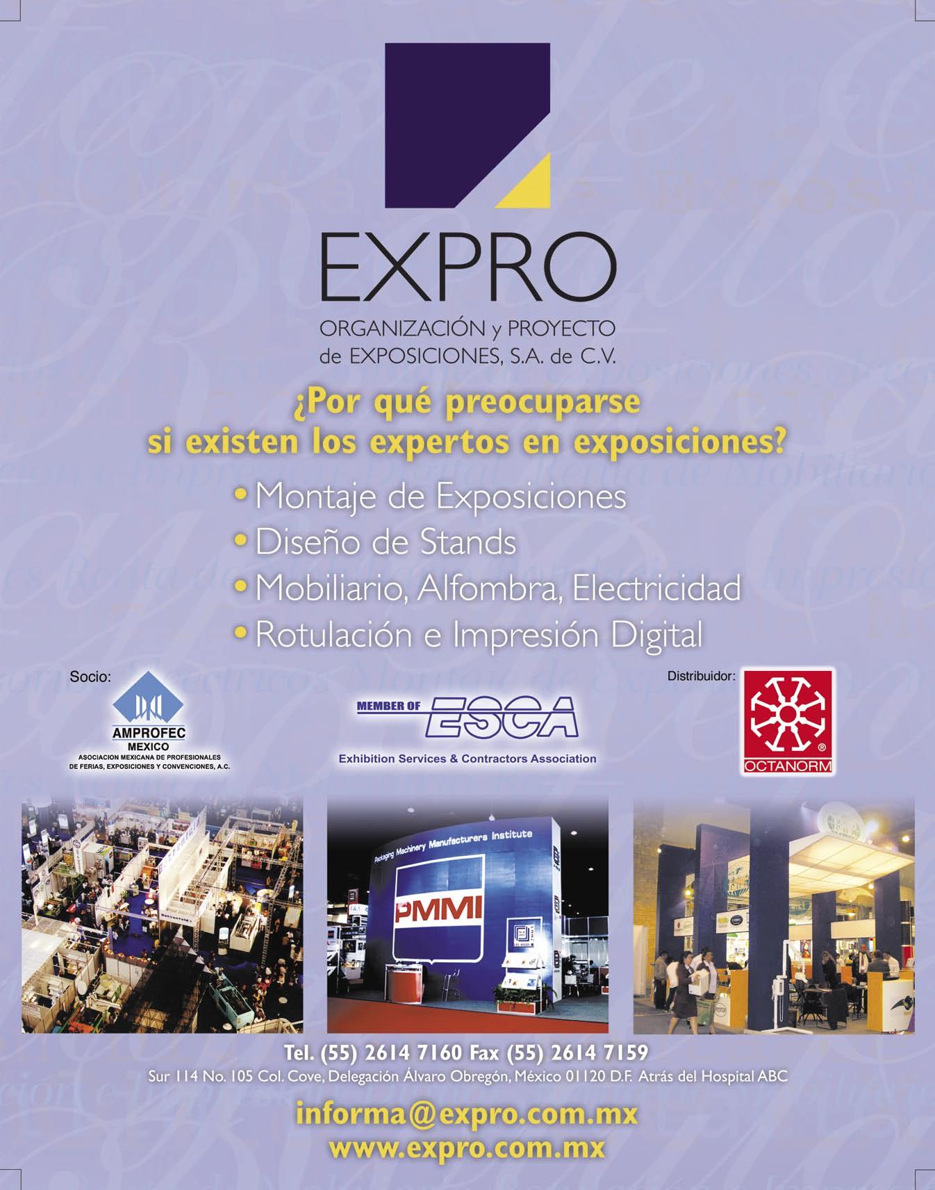 MÁSEXPOS es una publicación de EXPONET, S.A. DE C.V. Revista bimestral 6 de junio de 2004. Domicilio de la publicación: Merced Gómez No. 12 Col. Merced Gómez CP. 03930 Benito Juárez, México D.F. Editor responsable: Raúl de la Cerda Fortes. Número de reserva al título del Instituto Nacional del Derecho de Autor 04-2004-051812565300-102 de fecha 18 de mayo de 2004. Número del Certificado de Licitud de Título 12937. Número del Certificado de Licitud de Contenido 10510. Número de certificación Secretaría de Gobernación: 005-077.