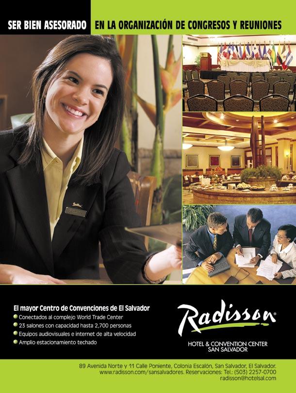 Bajo la misma línea tenemos al Radisson Plaza que dispone de dos plantas exclusivas para la realización de congresos y convenciones con un área total de extensión de 1302 m2 que pueden llegar a alojar a 2 mil 700 personas a través de sus 23 salones. En cuanto a hospedaje, este inmueble cuenta con 195 habitaciones con todos los servicios necesarios. Evidentemente, los servicios de alimentos y bebidas, así como las áreas de esparcimiento, están plenamente disponibles dentro del hotel y ofrecen una rica muestra de la gastronomía nacional e internacional.