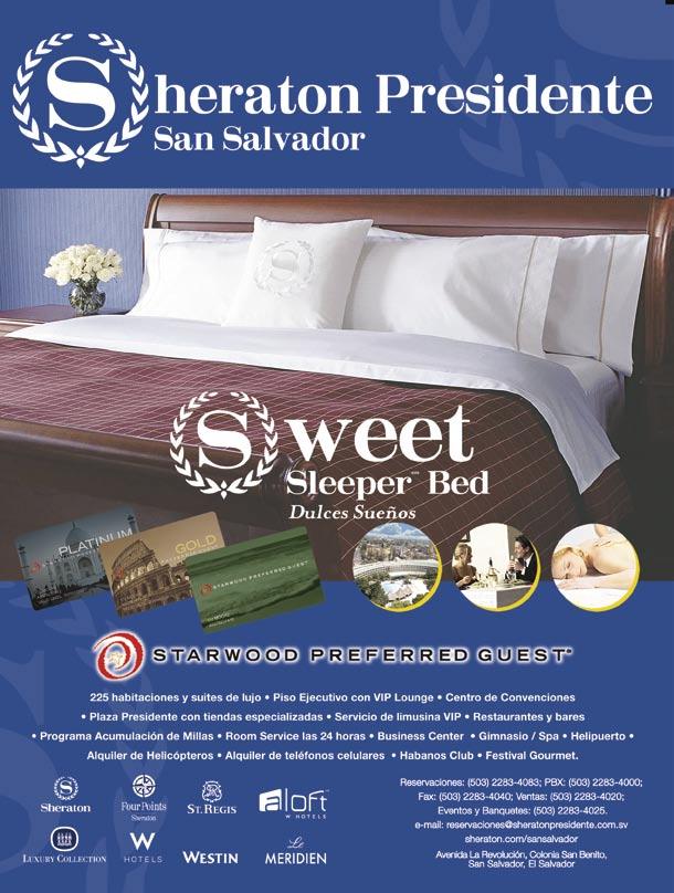 Si lo que se busca es comodidad, descanso e infraestructura con todos los servicios para el turista de negocios, el Hotel Sheraton Presidente San Salvador es la mejor opción, no sólo porque está situado en un área residencial cerca de la Zona Rosa con gran cantidad de restaurantes, bares y tiendas de marca, sino por su cercanía a la Feria Internacional de El Salvador y al Aeropuerto Internacional de Comapala que se encuentra a tan sólo 35 minutos.