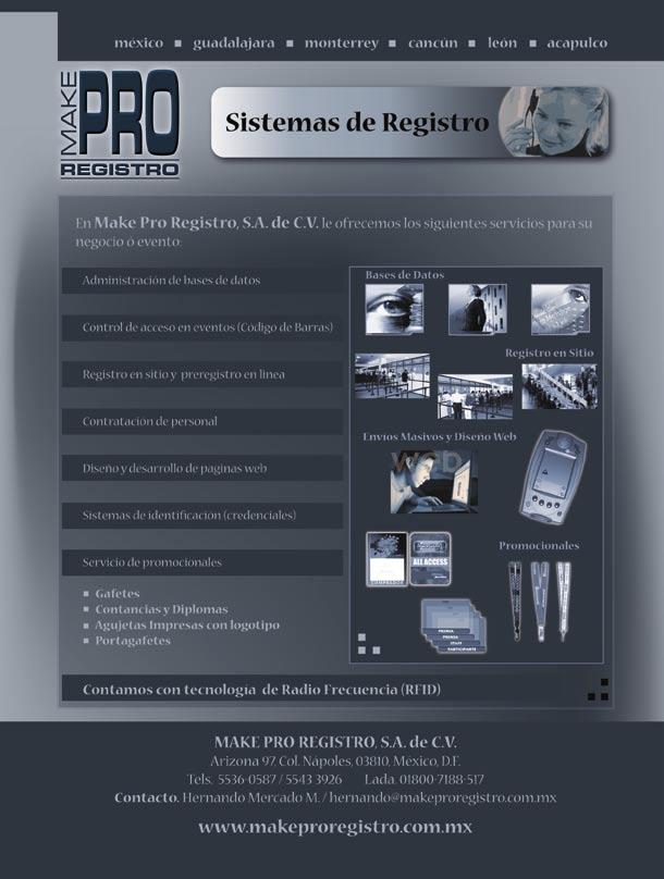 Número de certificación Secretaría de Gobernación: 005-077. Impresa por : SERVICIOS PROFESIONALES DE IMPRESIÓN S.A. de C.V. Calle Mimosas #31 Col. Santa María Insurgentes. C.P. 06430. México, D.F. Distribuida por: Centro Mexicano de Desarrollo Editorial S.A. de C.V. Clzda. la Viga No. 1525 Col. Unidad Modelo C.P. 09089 Del. Iztapalapa México D.F. Tiraje de esta publicación 10,000 ejemplares. Suscripción por un año $259.00 por seis números.