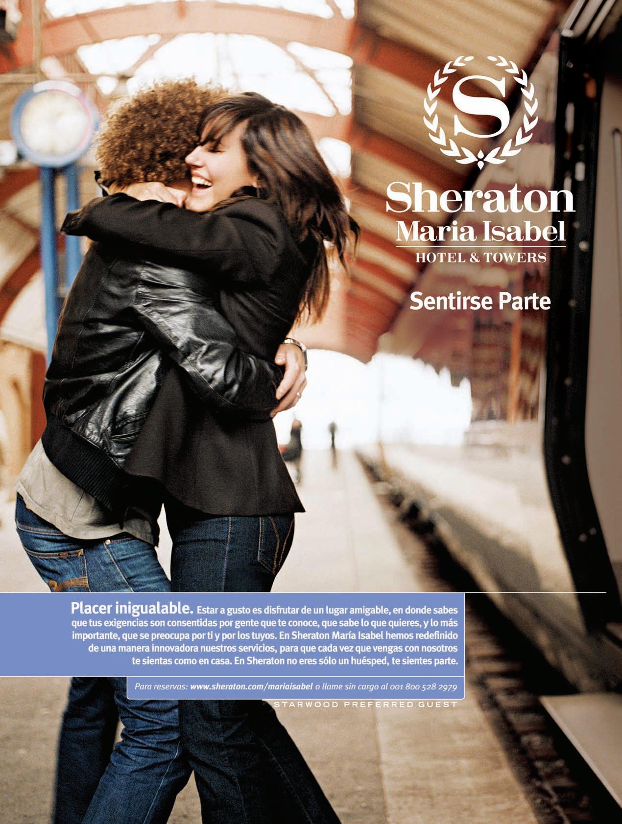 La calidad, el servicio y la gente son algunos elementos que desde siempre han identi!cado al Sheraton María Isabel Hotel & Towers, pero es la intención de posicionarse aún más – con base a la adecuación de los requerimientos — y la innovación de sus instalaciones, los ingredientes que sin duda lograrán colocarlo en el gusto de los organizadores de eventos.