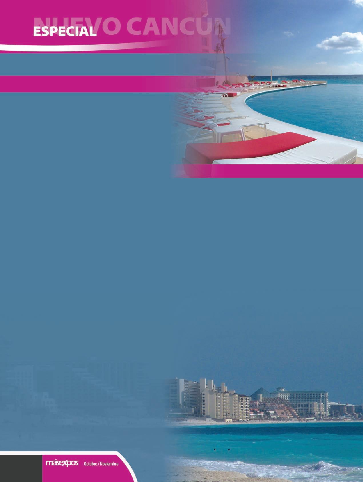 Para ello, además de ofrecer una excelente infraestructura, que posee todos los servicios espaciales y tecnológicos, se ha dado a la tarea de continuar con una estrategia que les permita identi!car las necesidades de los organizadores de este tipo de eventos. Así, se adaptan y se adecuan a cada uno de los actores que intervienen en la industria. La exibilidad es la particularidad que los hace competir en el mercado, comentó en entrevista para Másexpos el Director General del hotel, Antonio Torres.