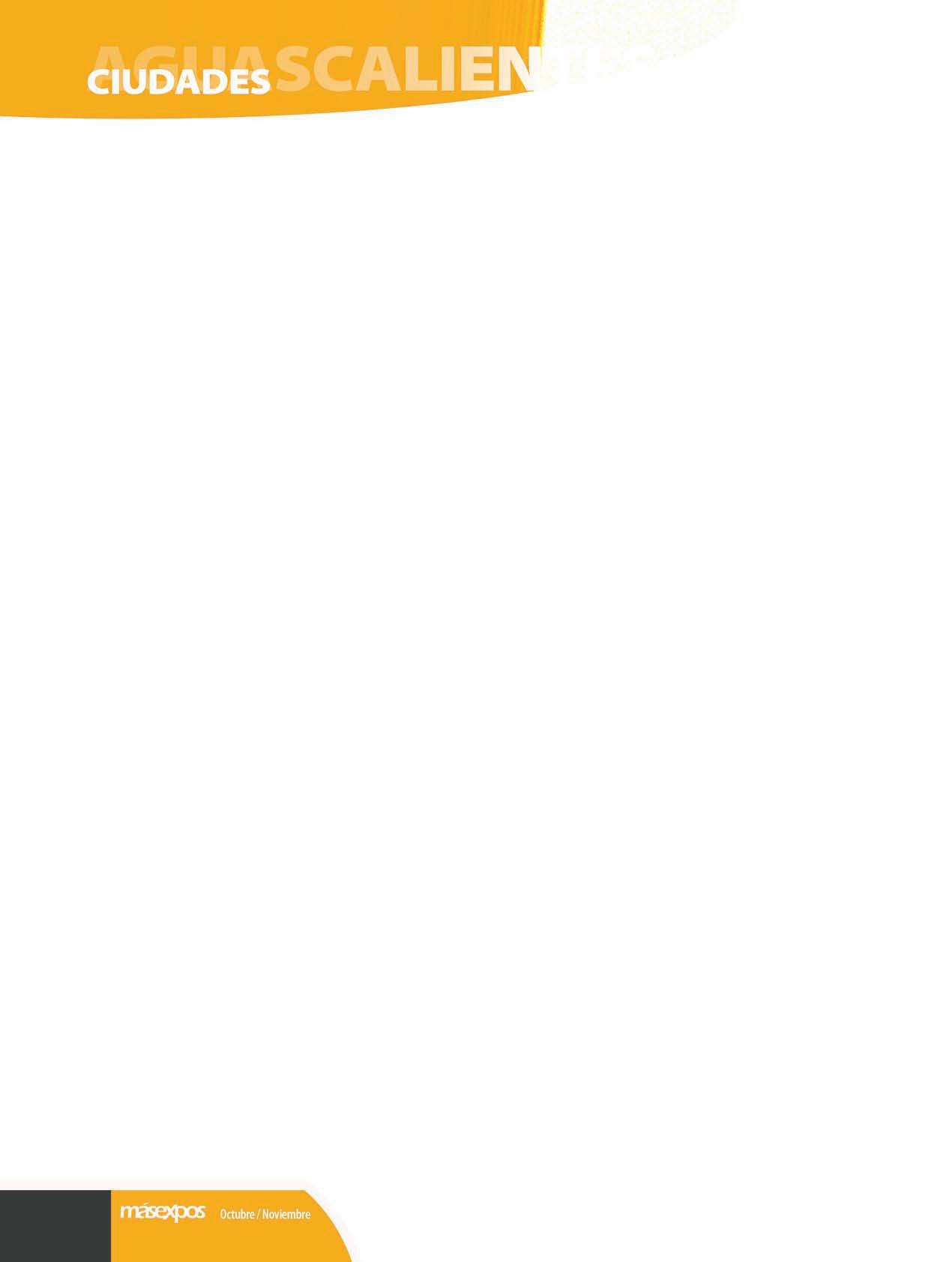 Mientras eso sucede con su infraestructura, la OCCA, O!cina de Congresos y Convenciones de Aguascalientes, comandada por Dolores Muñoz, ha decido promover Aguascalientes asistiendo a juntas con empresarios y con la Secretaría de Turismo del estado para atraer al turista de negocios y presentarle la entidad como un lugar con su!ciente capacidad a la hora de realizar congresos y convenciones.