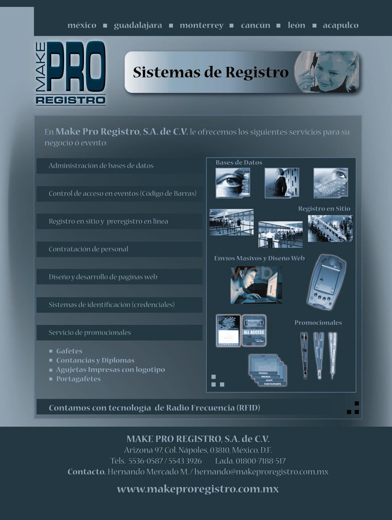 Número de certi cación Secretaría de Gobernación: 005-077. Impresa por : SERVICIOS PROFESIONALES DE IMPRESIÓN S.A. de C.V. Calle Mimosas #31 Col. Santa María Insurgentes. C.P. 06430. México, D.F. Distribuida por: Centro Mexicano de Desarrollo Editorial S.A. de C.V. Clzda. la Viga No. 1525 Col. Unidad Modelo C.P. 09089 Del. Iztapalapa México D.F. Tiraje de esta publicación 10,000 ejemplares. Suscripción por un año $259.00 por seis números.