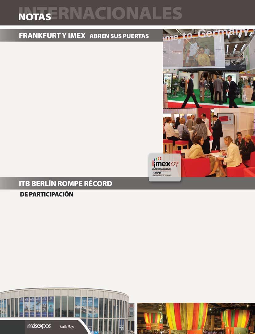 • Cobertura de los eventos más relevantes, expos, ferias, congresos y convenciones, nacionales e internacionales. Entre los que destacan IMEX, Frankfurt; FITUR, Madrid; COCAL, México; entre otros.