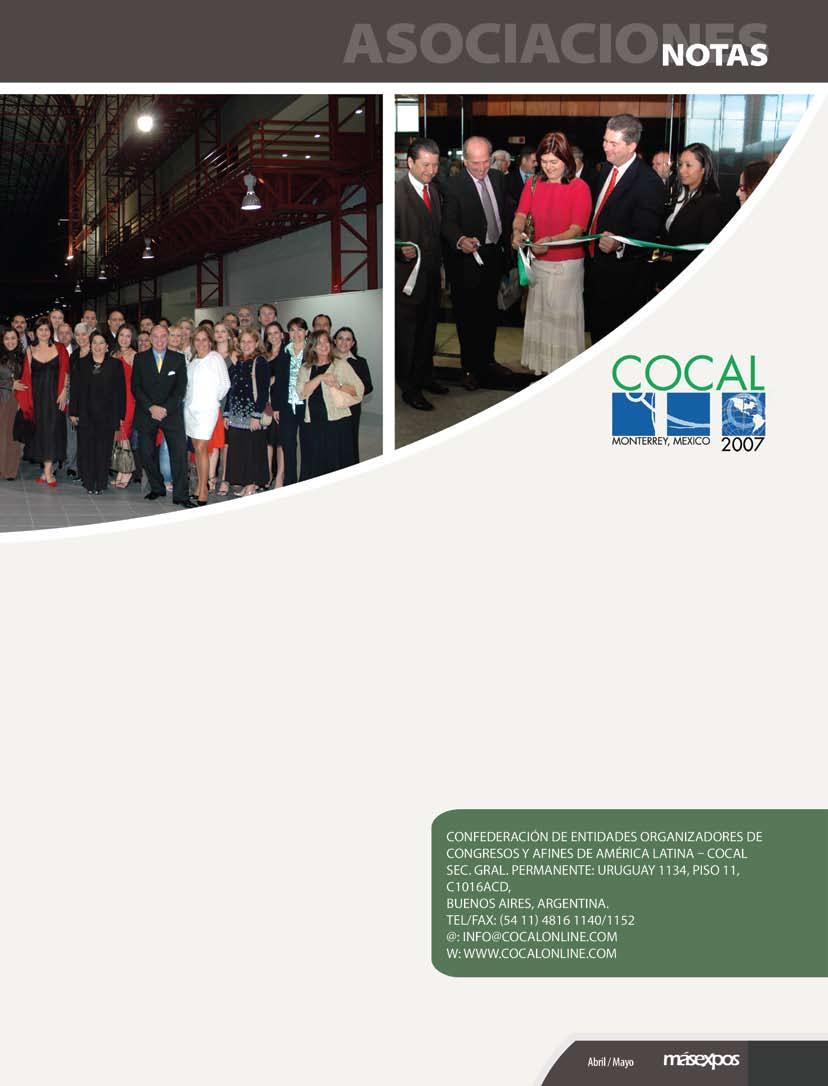 • Como estrategia de fortalecimiento para la promoción y difusión de exposiciones y ferias, así como de la cadena productiva de la industria, continuamos afinando la plataforma virtual www. megaexpo.com, el sitio de referencia para el mercado de eventos en América Latina.