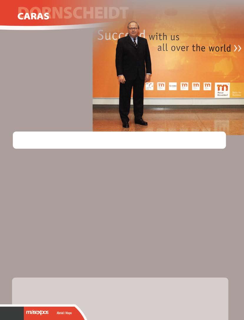 Por otro lado, en esta edición de Másexpos capturamos las impresiones del Werner Dornscheidt, el Presidente y CEO de Messe Dusseldorf. Sin duda, este recinto y organizador alemán representa uno de los motores más dinámicos de la industria ferial de ese país y a nivel global. Sus comentarios reflejan al detalle ese dinamismo que requiere no sólo un organizador exitoso, sino un verdadero líder global de la industria.