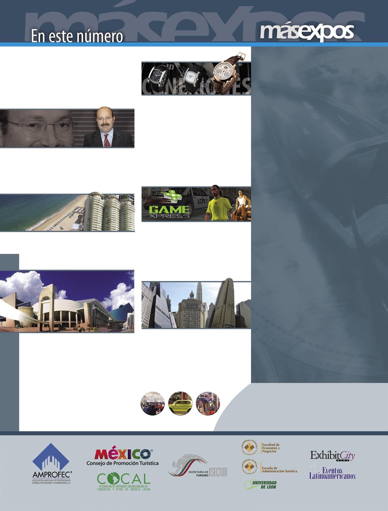 Los invitamos, una vez más, a que recorran las páginas de , para que encuentren en ellas los puntos clave de una industria, la de exposiciones, ferias, congresos, convenciones e incentivos, que es cada día más relevante para nuestro México y el Mundo.