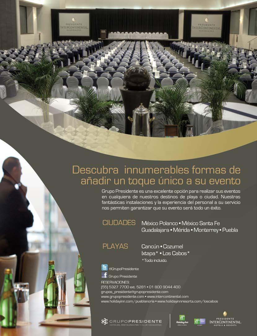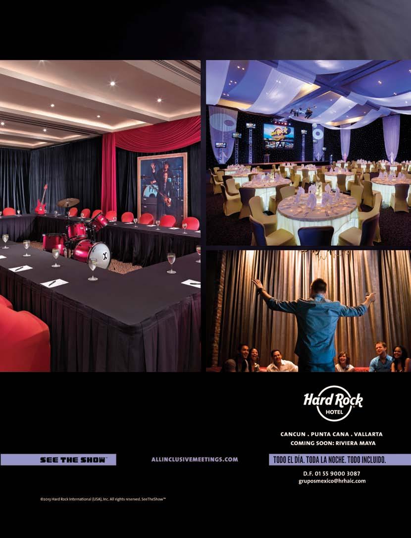 NÚMERO 57 | OCTUBRE - NOVIEMBRE 2013 Hoteles de playa & de ciudad, distinguidos por los Meeting Planners ¡BIENVENIDOS NUESTROS NUEVOS COLABORADORES! MARIANO CASTEX Y JAIME SALAZAR LIVE AQUA MEXICO CITY HOTEL & SPA 000570004700049 $45.00 MX