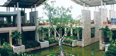 107 VILLAS MAYAS conforman este grandioso complejo que se localiza en la paradisiaca Riviera Maya, alternando la exuberancia que la naturaleza circundante ofrece, con el lujo y glamour distintivos de Banyan Tree Hotels and Resorts. Su Club de Golf “El Camaleón” le debe su nombre al hecho de repartirse en tres distintos ecosistemas: selva, manglar y mar. Dispone de una fastuosa y exclusiva sala de banquetes de más de 3000 m 2 , misma que puede albergar hasta 200 comensales. Por su parte, las 4 salas de reuniones: Labná, Kabah, Sayil y Mayapán se encuentran completamente equipadas con tecnología de vanguardia y con personal especializado y altamente calificado en pro de lograr el éxito en cuanto a la ejecución de todo tipo de reunión.