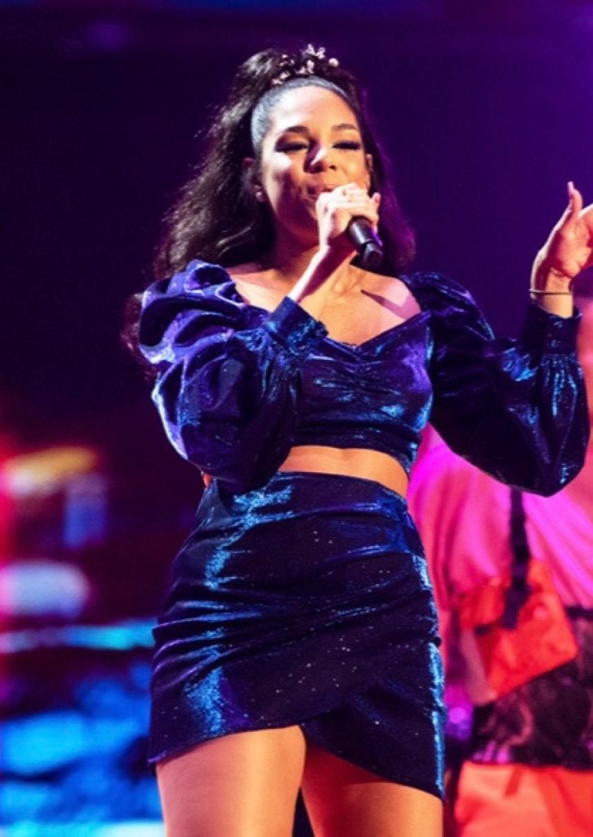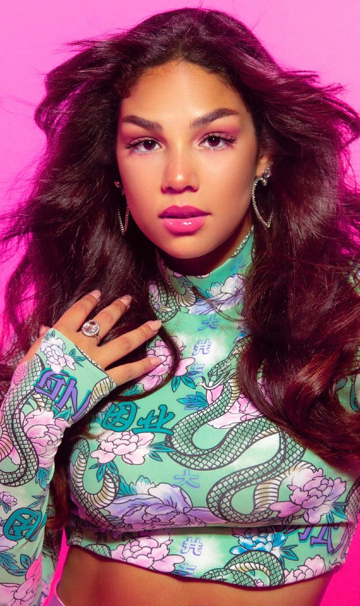 Jenifer Lopez is another inspiration. “I didn’t grow up listening to a lot of Latin music, but I did listen to J-Lo,” she says of the daughter of Puerto Rican immigrants who went on to become the biggest Latina star on the planet and the epitome of the American dream, singing at Joe Biden’s inauguration. “Again, she made her name in hip-hop and R&B, before really having the confidence to reveal her Latin identity. She’s an actress, singer, and dancer, and that’s actually something I want to do as well.”