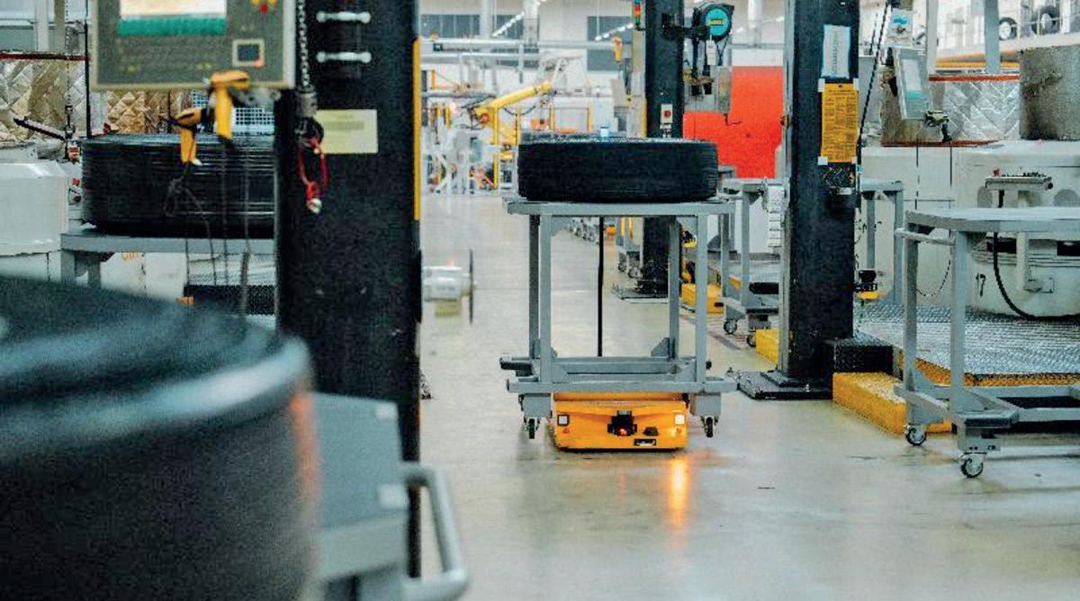 Los AMR se encargan de mover neumáticos verdes entre distintas estaciones del proceso de recauchutado, liberando al personal para dedicarse a tareas especializadas como el ajuste de maquinaria y el control de calidad.